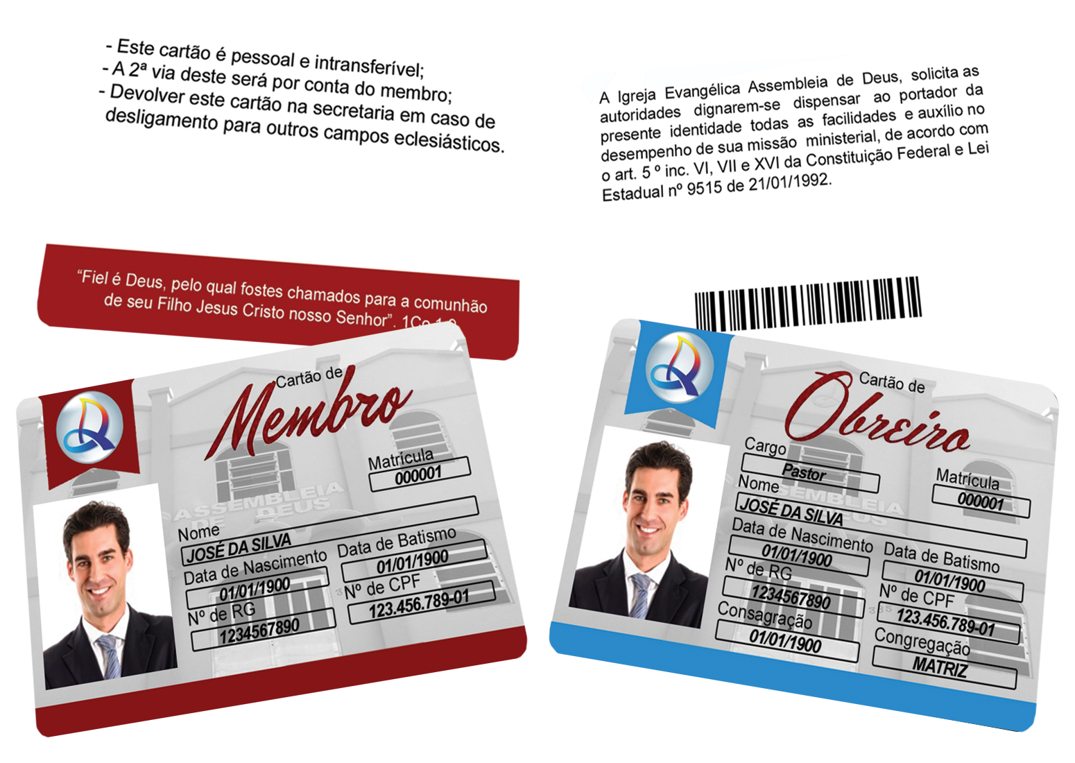 Modelos de Credencial para Membros e Obreiros